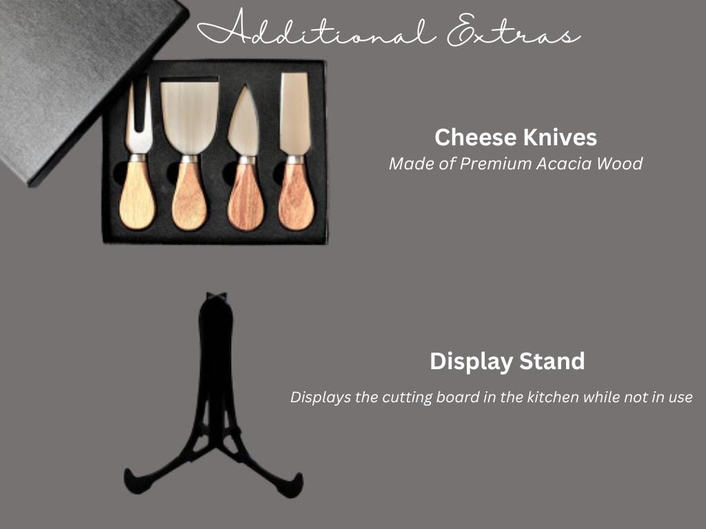 ✨Versatile Accessory: Complement the cutting board with cheese knives and a display stand, transforming it into a stylish and functional centerpiece.